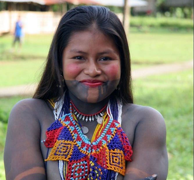 Tanto hombres como mujeres practican la pintura corporal, algunos se cubren casi todo su cuerpo y la mitad inferior de la caras que se extiende hacia atrás desde las comisuras de la boca. Algunos diseños son bloques sólidos de pintura con pequeños parches de piel abiertos para mostrar el contraste, otros son delicadas líneas elaborados con fina punta de una vara de bambú. El diseño tiene información el origen y el linaje familiar entre otros datos; cada grupo de edad y género se asignan razgos específicos. Este sistema de figuras atestiguan la existencia de una escritura propia en el pueblo Épera.