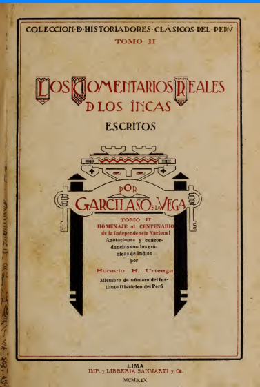 Los Comentarios Reales de los Incas escrito por Garcilaso de la Vega |